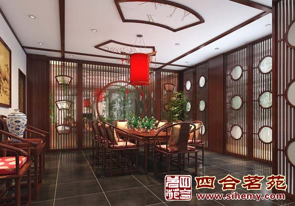 雅間二:雅間靠窗的花格可從月門出,將后面窗戶開啟。當(dāng)微風(fēng)輕拂,透過白沙,竹影朦朧飄渺,好像賦予了天棚上雕刻竹簡(jiǎn)生命,回味無窮。房間整體設(shè)計(jì),采用園林式借景為背景,意境深遠(yuǎn),淡定,輕松。
